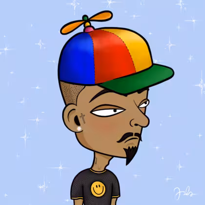 Collection Depressed Citizens Artist Juls Description ART. No team, no project, no future. Depressed Citizens is an urban & existential Art expression on Ordinals. In a parallel universe, "THEI" control us. DC unites against toxic society, encouraging critical thinking. 100% hand made collection that took Juls more than 6 months of daily work. Name Citizen#2069 Origin Hispanic Gender Man Necklace No Necklace Hat Propeller cap Mustache Beard Handlebar & chin puff Glasses No Glasses Earrings Diamond earring Hair Style Shaved head Clothes Smiley oversized T-shirt Tattoo Blessed tattoo Star Background With stars