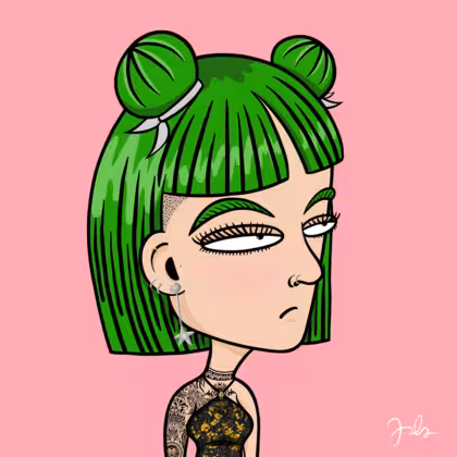Collection Depressed Citizens Artist Juls Description ART. No team, no project, no future. Depressed Citizens is an urban & existential Art expression on Ordinals. In a parallel universe, "THEI" control us. DC unites against toxic society, encouraging critical thinking. 100% hand made collection that took Juls more than 6 months of daily work. Name Citizen#730 Origin Caucasian non hispanic Gender Woman Necklace No Necklace Hat No Hat Mustache Beard No beard Glasses No Glasses Earrings Upper lobe rings Hair Style Mid-length mushroom with space buns Clothes Golden black halterneck top Tattoo Maya tattoo Star Background Without stars