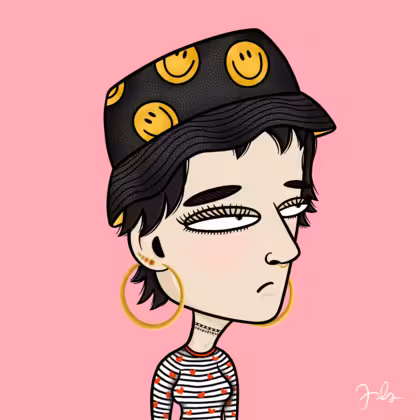 Collection Depressed Citizens Artist Juls Description ART. No team, no project, no future. Depressed Citizens is an urban & existential Art expression on Ordinals. In a parallel universe, "THEI" control us. DC unites against toxic society, encouraging critical thinking. 100% hand made collection that took Juls more than 6 months of daily work. Name Citizen#1293 Origin Caucasian non hispanic Gender Woman Necklace Choker Hat Smiley bucket hat Mustache Beard No beard Glasses No Glasses Earrings Upper lobe strass Hair Style Shaggy shorts with bangs Clothes Marine heart long-sleeve shirt Tattoo No Tattoo Star Background Without stars