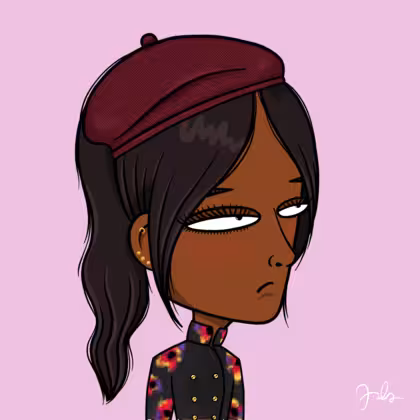 Collection Depressed Citizens Artist Juls Description ART. No team, no project, no future. Depressed Citizens is an urban & existential Art expression on Ordinals. In a parallel universe, "THEI" control us. DC unites against toxic society, encouraging critical thinking. 100% hand made collection that took Juls more than 6 months of daily work. Name Citizen#3111 Origin African descendant Gender Woman Necklace No Necklace Hat Burgundy beret Mustache Beard No beard Glasses No Glasses Earrings Rook hoop Hair Style High ponytail Clothes Not visible T-shirt Tattoo No Tattoo Star Background Without stars