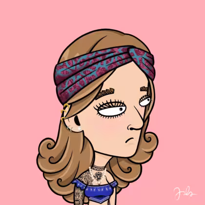 Collection Depressed Citizens Artist Juls Description ART. No team, no project, no future. Depressed Citizens is an urban & existential Art expression on Ordinals. In a parallel universe, "THEI" control us. DC unites against toxic society, encouraging critical thinking. 100% hand made collection that took Juls more than 6 months of daily work. Name Citizen#1636 Origin Caucasian non hispanic Gender Woman Necklace Pearl necklace Hat Printed headband Mustache Beard No beard Glasses No Glasses Earrings Upper lobe rings Hair Style Long wavy Clothes Blue bandana crop top Tattoo Maya tattoo Star Background Without stars