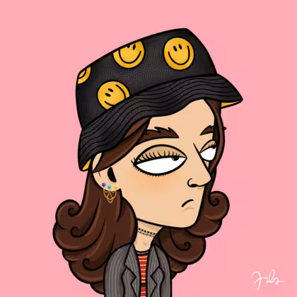 Collection Depressed Citizens Artist Juls Description ART. No team, no project, no future. Depressed Citizens is an urban & existential Art expression on Ordinals. In a parallel universe, "THEI" control us. DC unites against toxic society, encouraging critical thinking. 100% hand made collection that took Juls more than 6 months of daily work. Name Citizen#2280 Origin Caucasian non hispanic Gender Woman Necklace Choker Hat Smiley bucket hat Mustache Beard No beard Glasses No Glasses Earrings Chandelier earring Hair Style Long wavy Clothes Red stripe elbow-sleeve shirt Tattoo No Tattoo Star Background Without stars