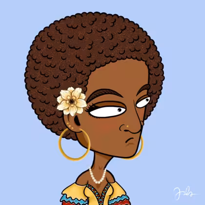 Collection Depressed Citizens Artist Juls Description ART. No team, no project, no future. Depressed Citizens is an urban & existential Art expression on Ordinals. In a parallel universe, "THEI" control us. DC unites against toxic society, encouraging critical thinking. 100% hand made collection that took Juls more than 6 months of daily work. Name Citizen#728 Origin Hispanic Gender Woman Necklace Pearl necklace Hat No Hat Mustache Beard No beard Glasses No Glasses Earrings Ball earrings trio Hair Style Afro Clothes Traditional Caribbean dress Tattoo No Tattoo Star Background Without stars