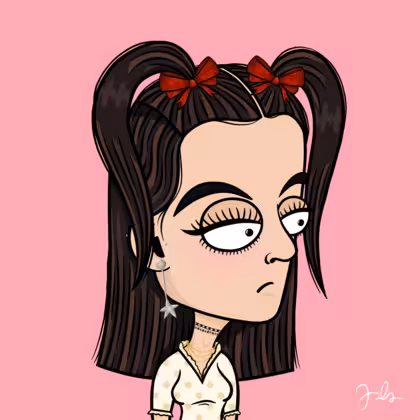 Collection Depressed Citizens Artist Juls Description ART. No team, no project, no future. Depressed Citizens is an urban & existential Art expression on Ordinals. In a parallel universe, "THEI" control us. DC unites against toxic society, encouraging critical thinking. 100% hand made collection that took Juls more than 6 months of daily work. Name Citizen#3058 Origin Caucasian non hispanic Gender Woman Necklace Gold layered necklace Hat Red bow Mustache Beard No beard Glasses No Glasses Earrings Star earring set Hair Style Long straight with space ponytails Clothes Polka dot shirt Tattoo No Tattoo Star Background Without stars