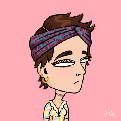Collection Depressed Citizens Artist Juls Description ART. No team, no project, no future. Depressed Citizens is an urban & existential Art expression on Ordinals. In a parallel universe, "THEI" control us. DC unites against toxic society, encouraging critical thinking. 100% hand made collection that took Juls more than 6 months of daily work. Name Citizen#1330 Origin Caucasian non hispanic Gender Woman Necklace Gold layered necklace Hat Printed headband Mustache Beard No beard Glasses No Glasses Earrings Upper lobe strass Hair Style Shaggy short Clothes Spring flowers v-neck shirt Tattoo No Tattoo Star Background Without stars