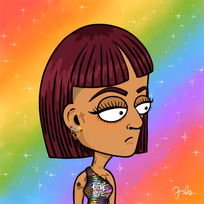 Collection Depressed Citizens Artist Juls Description ART. No team, no project, no future. Depressed Citizens is an urban & existential Art expression on Ordinals. In a parallel universe, "THEI" control us. DC unites against toxic society, encouraging critical thinking. 100% hand made collection that took Juls more than 6 months of daily work. Name Citizen#2205 Origin LGBT-Q+ Gender Woman Necklace Gold layered necklace Hat No Hat Mustache Beard No beard Glasses No Glasses Earrings Rook hoop Hair Style Mid-length mushroom Clothes Love is love one shoulder crop Tattoo Blessed tattoo Star Background With stars