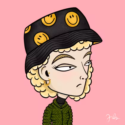 Collection Depressed Citizens Artist Juls Description ART. No team, no project, no future. Depressed Citizens is an urban & existential Art expression on Ordinals. In a parallel universe, "THEI" control us. DC unites against toxic society, encouraging critical thinking. 100% hand made collection that took Juls more than 6 months of daily work. Name Citizen#807 Origin Caucasian non hispanic Gender Woman Necklace No Necklace Hat Smiley bucket hat Mustache Beard No beard Glasses No Glasses Earrings Tragus star earring Hair Style Curly Clothes Black turtleneck women's sweater Tattoo No Tattoo Star Background Without stars