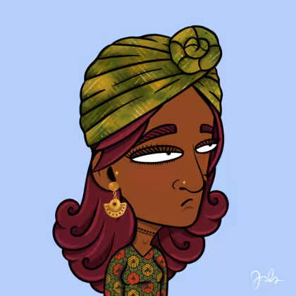 Collection Depressed Citizens Artist Juls Description ART. No team, no project, no future. Depressed Citizens is an urban & existential Art expression on Ordinals. In a parallel universe, "THEI" control us. DC unites against toxic society, encouraging critical thinking. 100% hand made collection that took Juls more than 6 months of daily work. Name Citizen#265 Origin Hispanic Gender Woman Necklace Choker Hat Green turban Mustache Beard No beard Glasses No Glasses Earrings Pre-Columbian Earrings Hair Style Long wavy Clothes Geometric ethnic long-sleeve dress Tattoo No Tattoo Star Background Without stars
